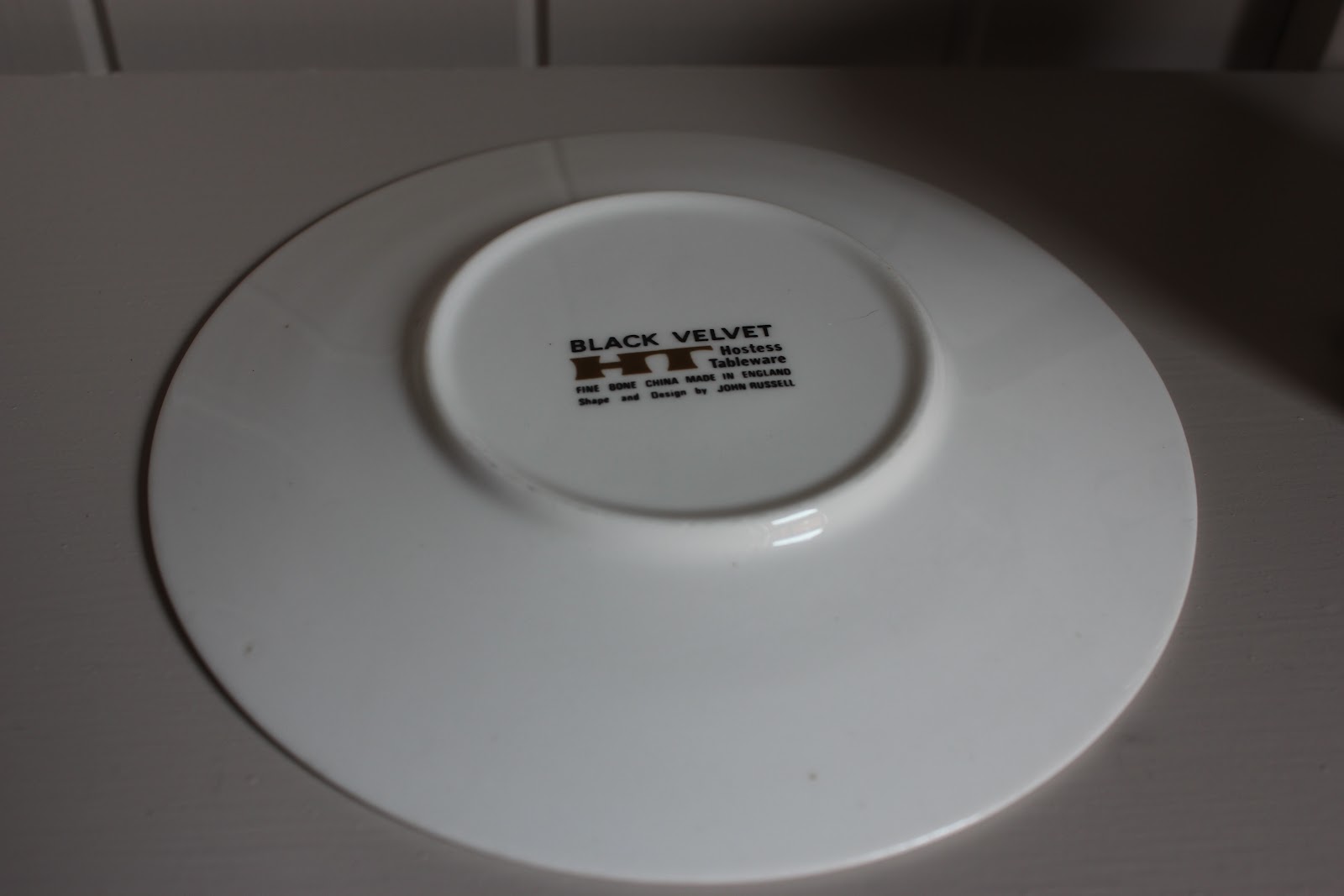 fine bone china, and is in perfect condition. The pattern is 'Black Velvet' designed by John Russell and made